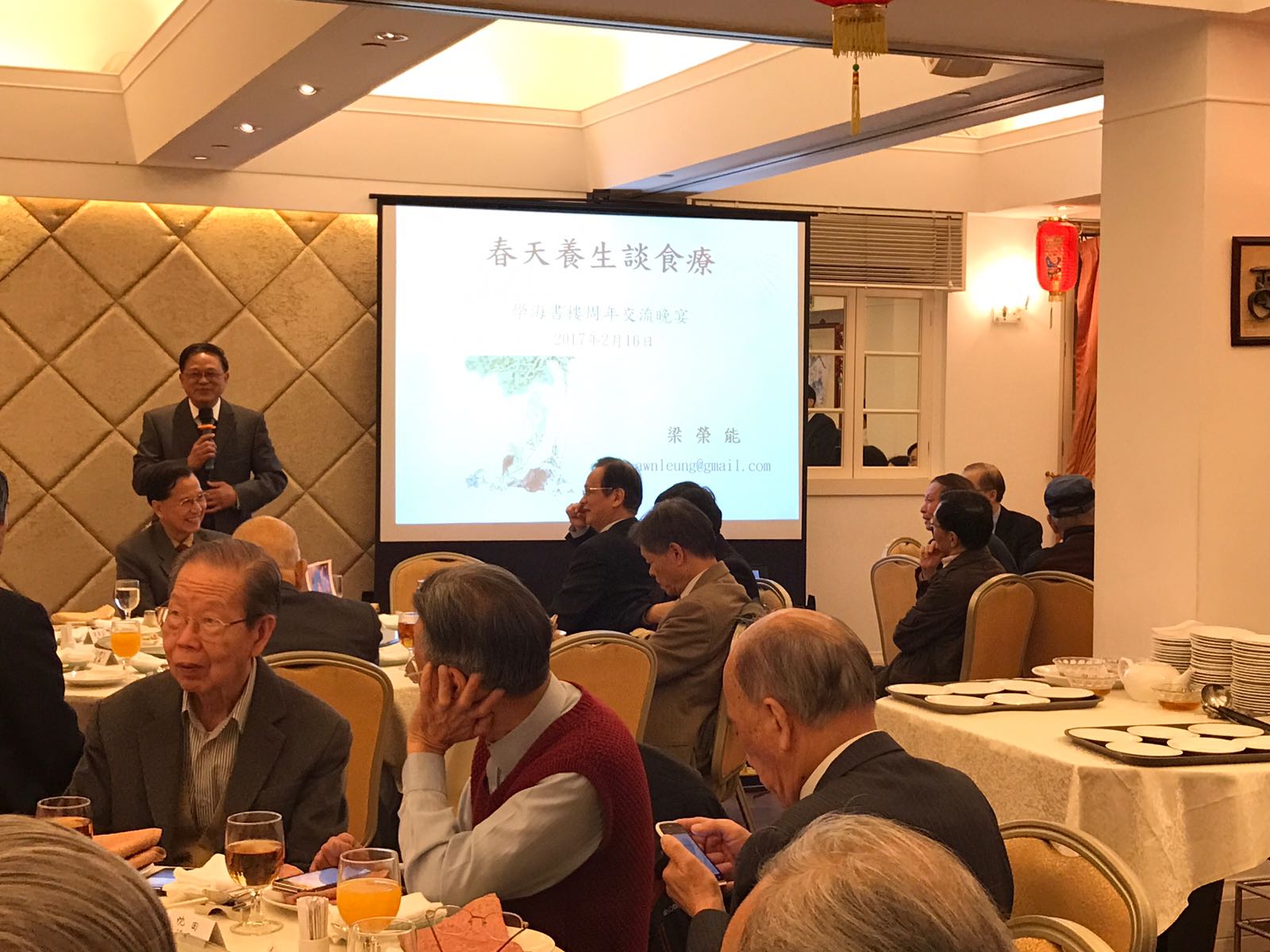 梁教授在週年交流晚宴上分享「春天養生談食療」