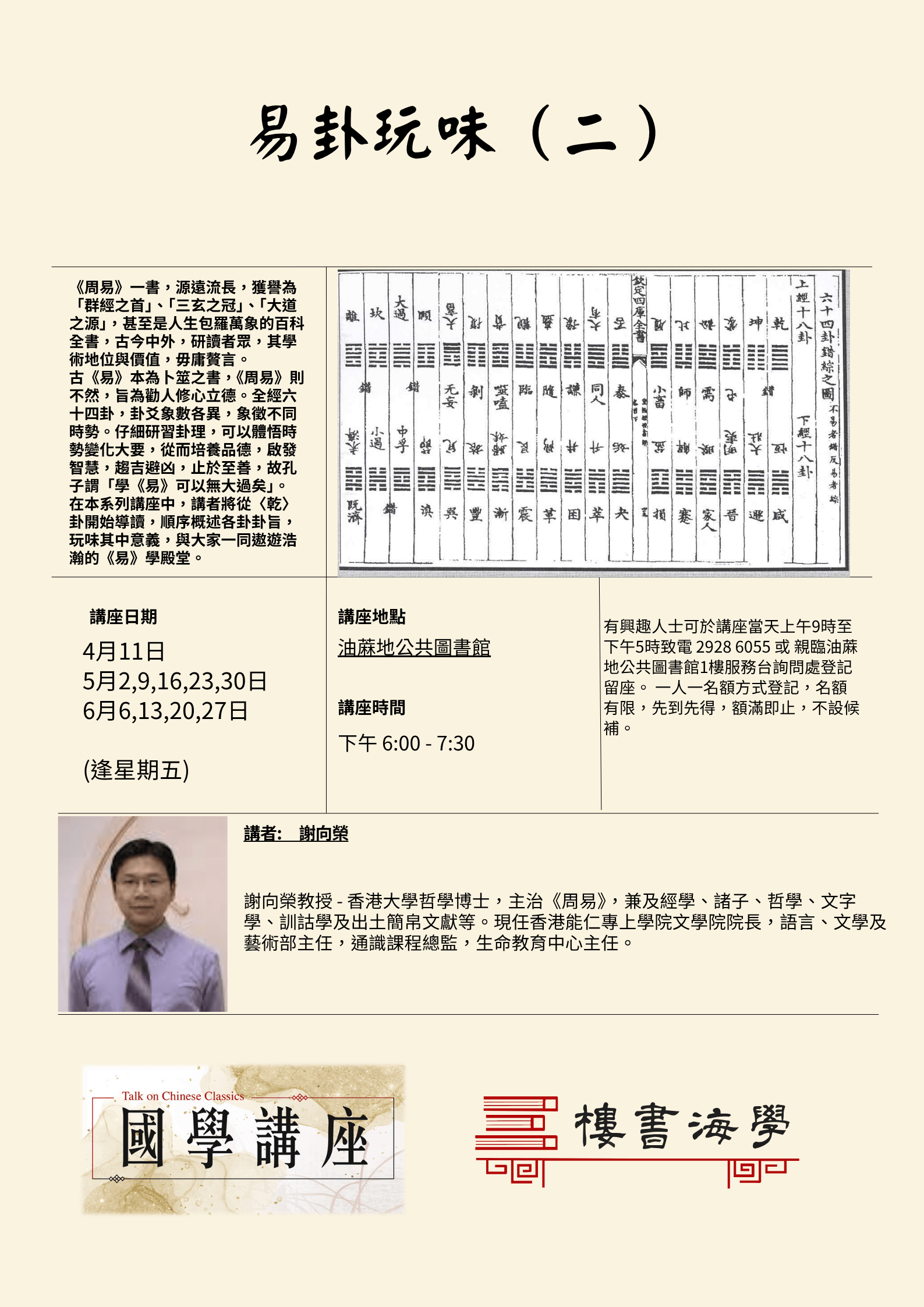 講題:歷代書法的欣賞與臨摹 易卦玩味(二)